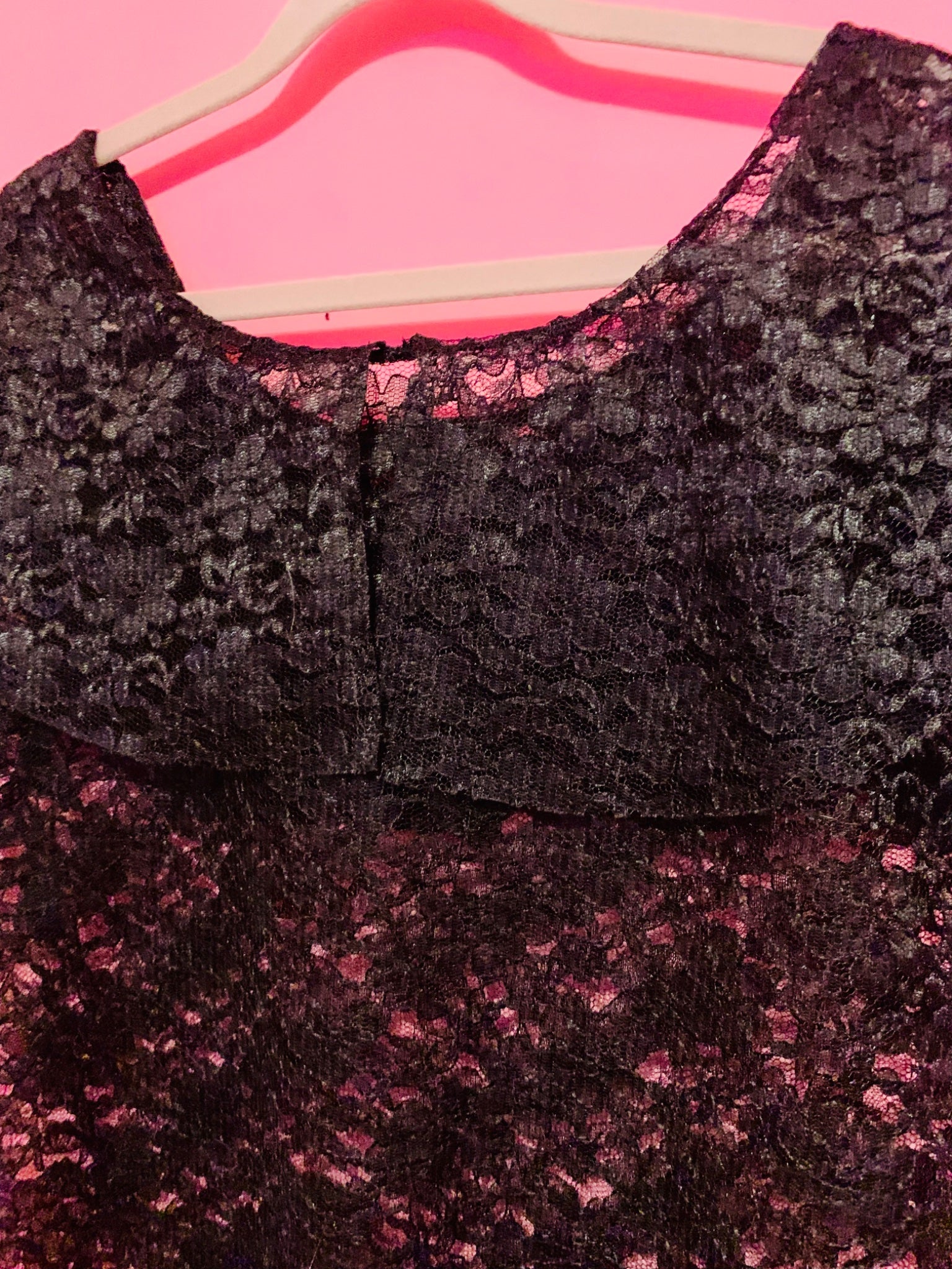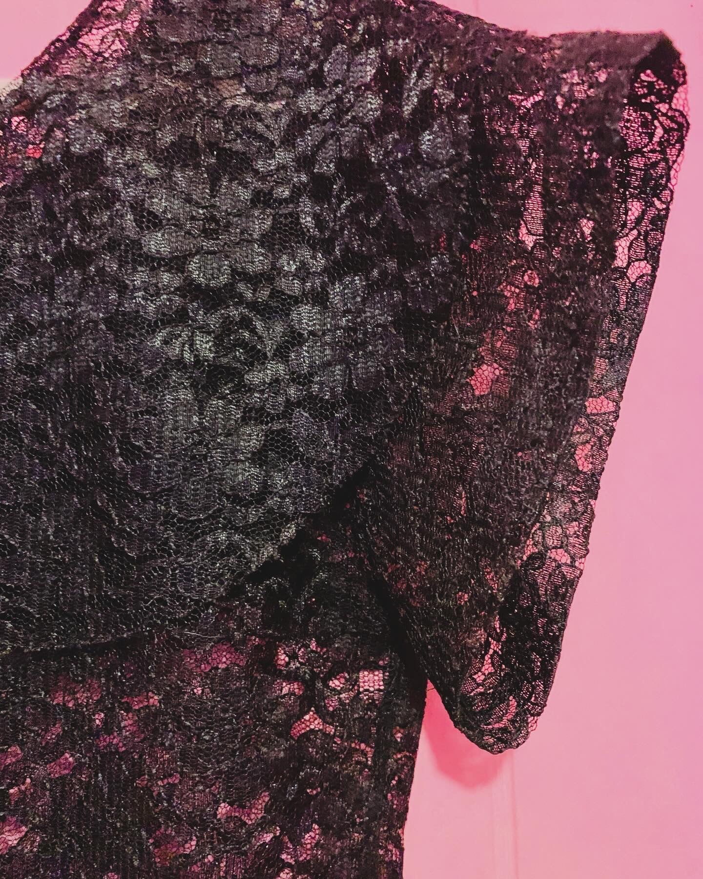 Black lace crop top with collar. 100% recycled materials- vintage tablecloth.