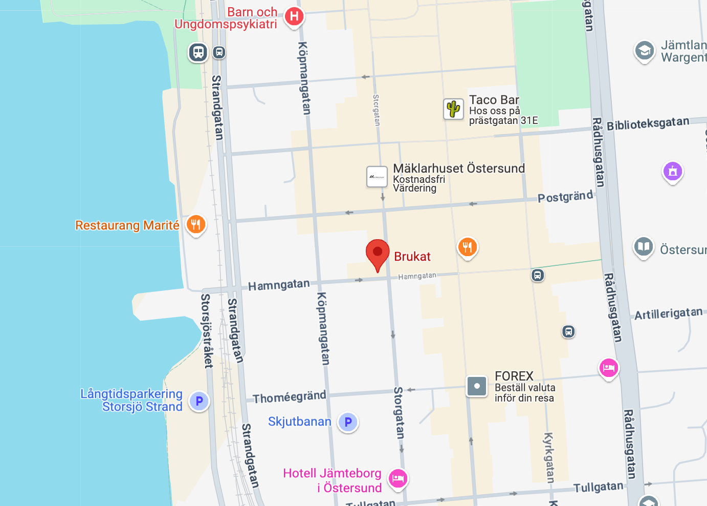 Brukat is a second-hand store with a focus on sustainable fashion. The store offers a curated selection of modern women's clothing, shoes, bags, and accessories in excellent pre-loved condition. Customers sell their clothes and discover new favorites – a circular concept that has made Brukat a beloved store. In 2024, Brukat was awarded "Årets Lalander" at the Guldgalan for its contribution to commerce in Östersund.
